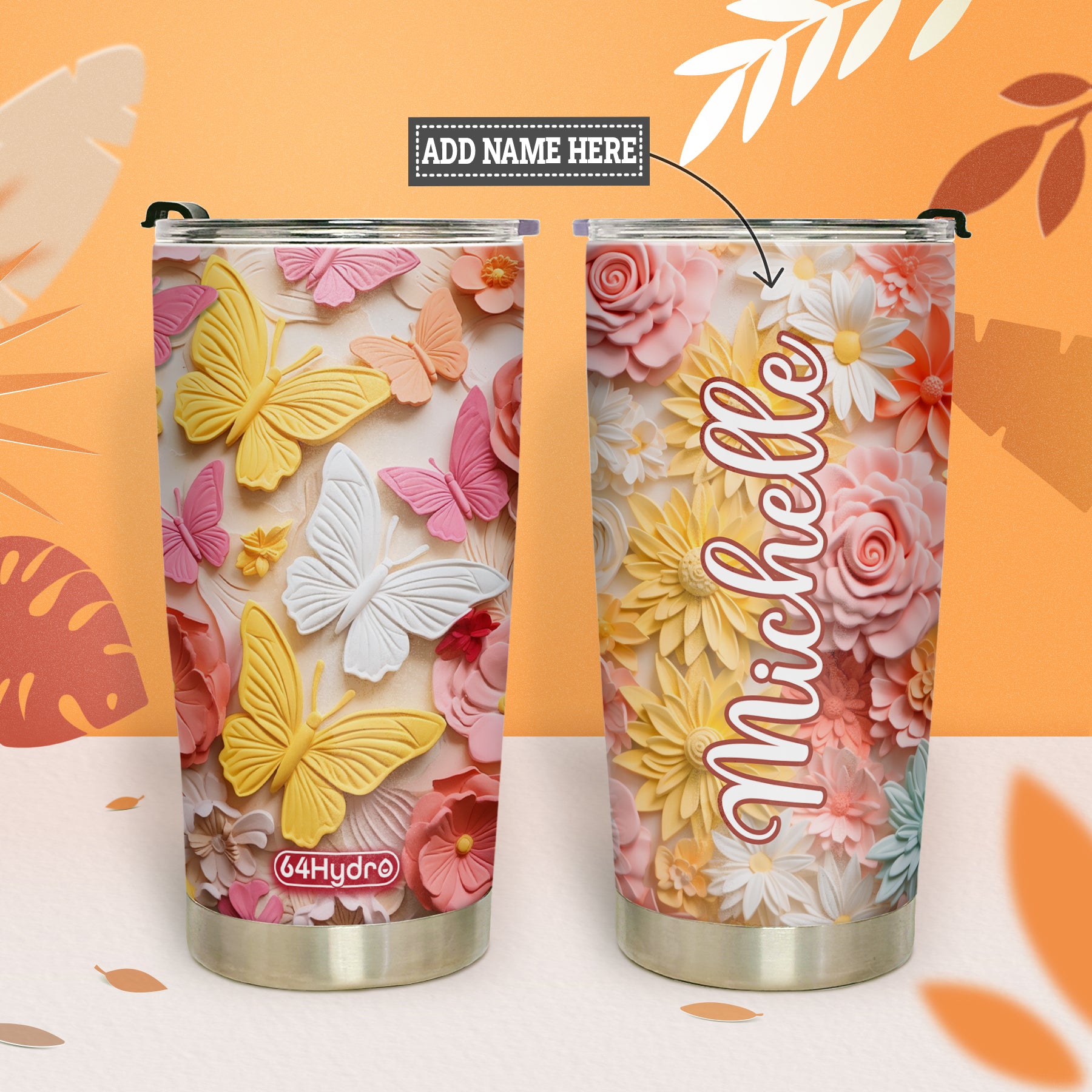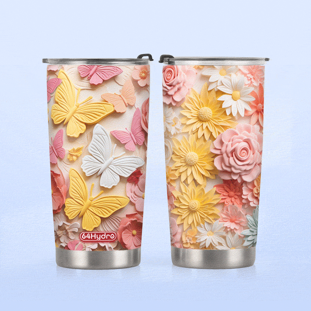 Product Name: Colorful Butterfly Plaster Carving HHAY060723960 Stainless Steel Tumbler