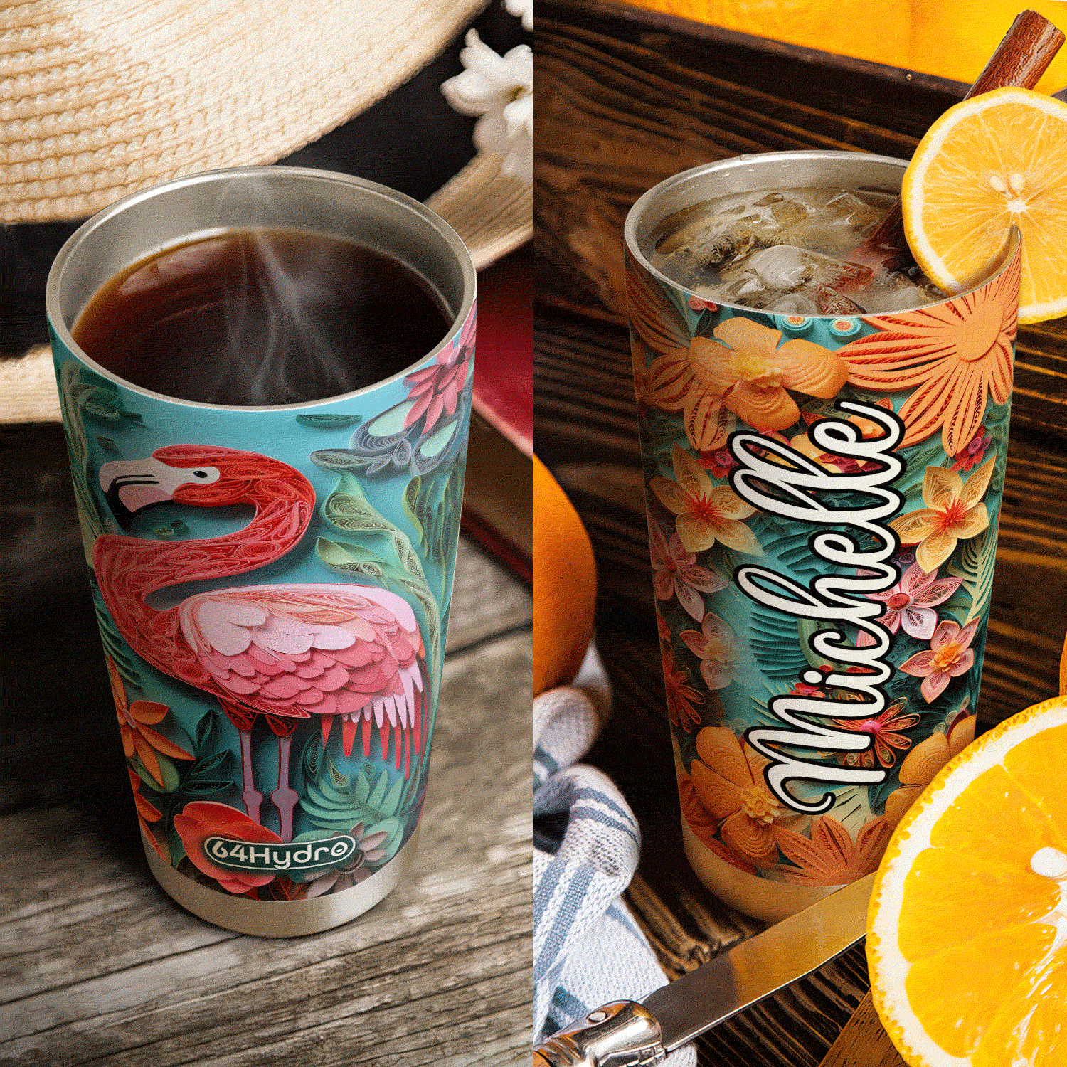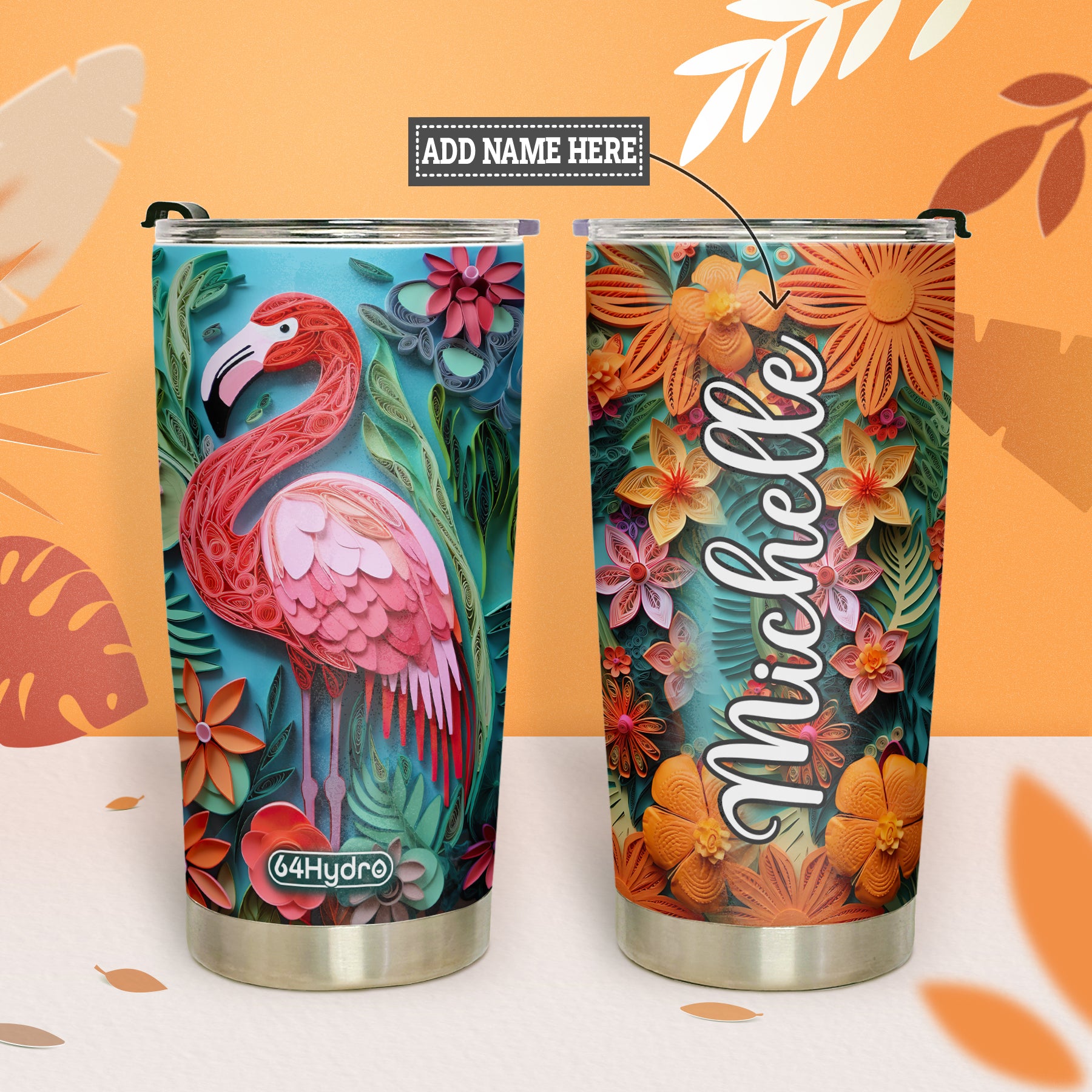 Product Name: Flamingo Tropical Paper Quiling HHAY060723102 Stainless Steel Tumbler