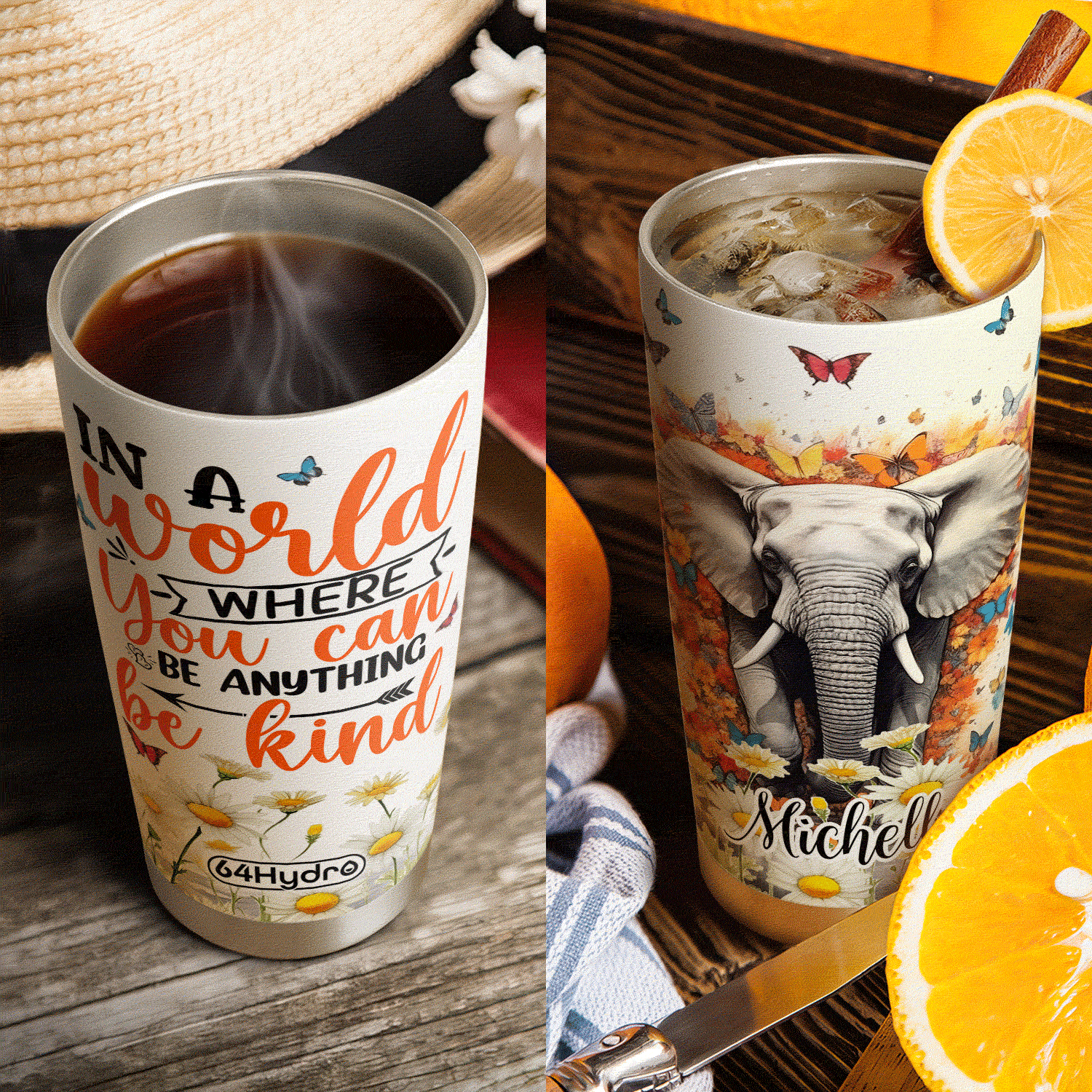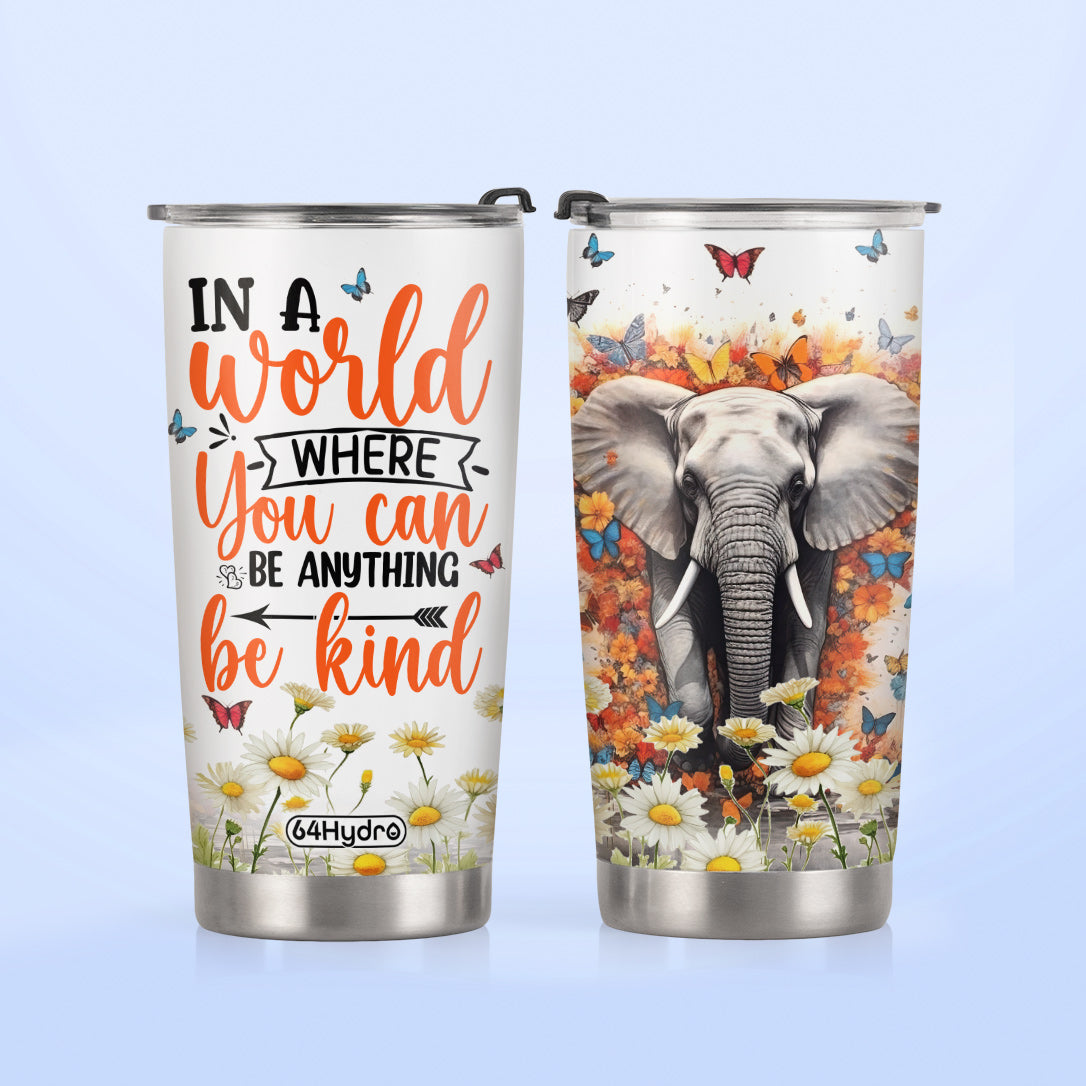 Product Name: In A World Where You Can Be Anything Be Kind Daisy Elephant HHLZ280623419 Stainless Steel Tumbler
