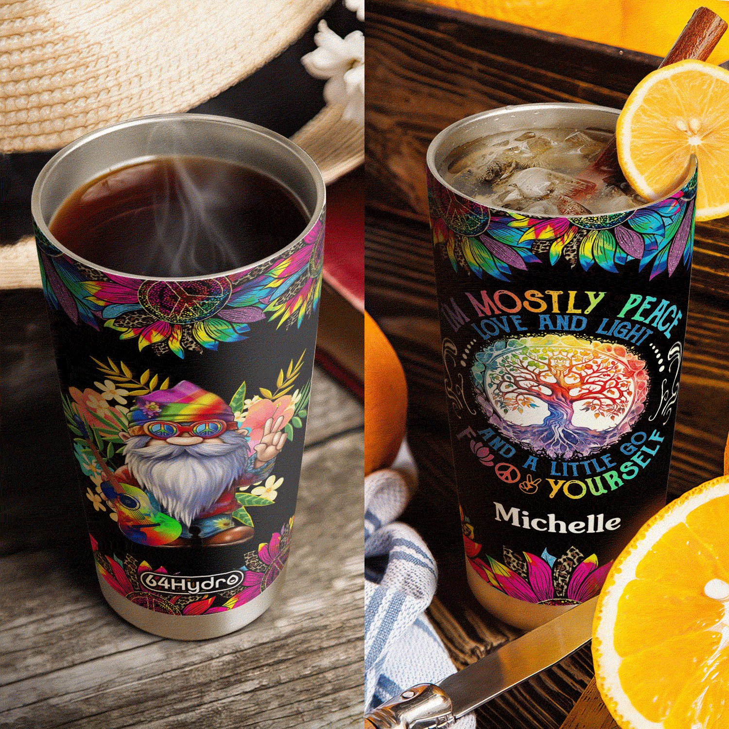 Product Name: Tie Dye Gnome Mostly Peace Love And Light HHLZ270623011 Stainless Steel Tumbler